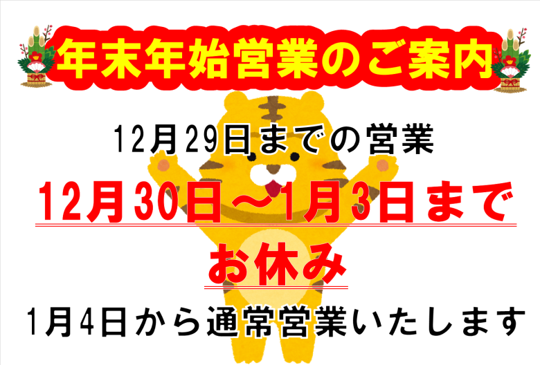 • 年末年始営業のご案内